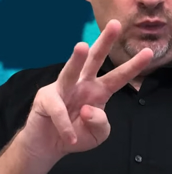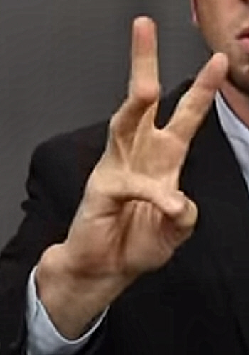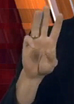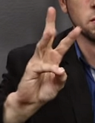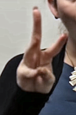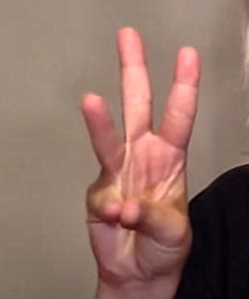 https://youtu.be/wOzk_k4cij4?t=19 Dawn Whitcher spelling a "W"
