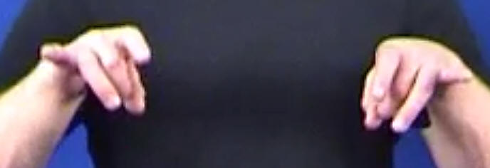 You may see a version showing the 8-handshape with the pads of the middle finger and thumb touching rather than the tip of the middle finger touching the pad of the thumb. Both versions are legit. There is a lot of variation though so see the notes below.