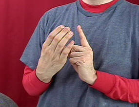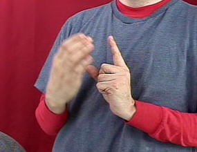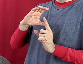 Hold up your left (or base hand) in an index finger handshape. Circle the right "C" handshape around the index finger.