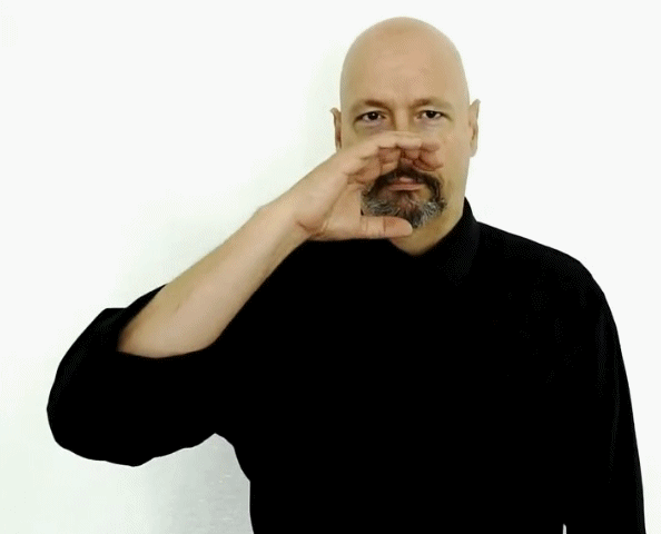 The dominant hand starts as a "C" on the nose then moves downward slightly then upward and changes to "S"