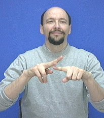 In the pictures above, I'm using just my index finger on my left hand, (remember, my wife (and a zillion other people) use "V" handshapes on both hands. Not that she is right mind you. I just put her version above mine as the recommended version because I want to make her happy.